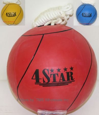 Tetherball for Playgrounds & Picnics:Tether Ball TMS Wholesale Inc. New Page 1 Brand New Tetherball! Color May Vary Based on Availability in Stock (red, yellow, blue, white) Covered in high grade rubber Butyl Bladder 7 + Feet of Nylon Cord Size: #5 Great fun for all ages!